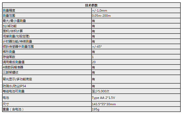D5 激光測距儀詳細參數(shù):